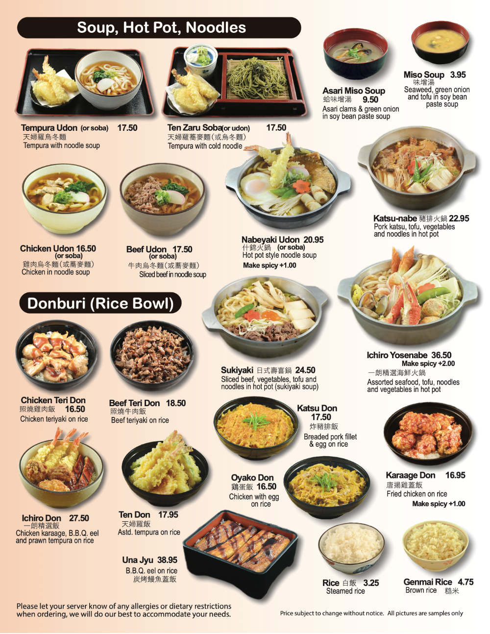 Soup, Hot Pot, Noodles and Donburi (Rice Bowl)